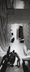 Questo set è stato costruito da Vickers Armstrong per un costo di 750,000 sterline. Aveva un diametro di 38 piedi e ruotava esattamente come una ruota panoramica. Tutti gli oggetti erano stati avvitati alle pareti per evitare che cadessero (compreso il povero Gary Lockwood): ciò non impedì ad un faretto per l'illuminazione di scena di precipitare a terra e ferire un tecnico.