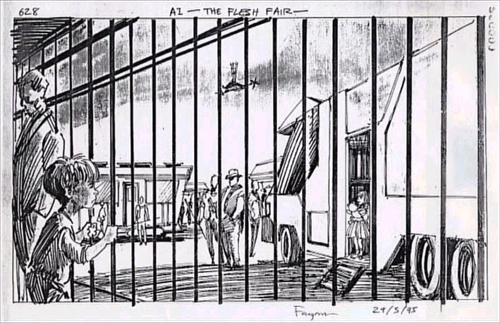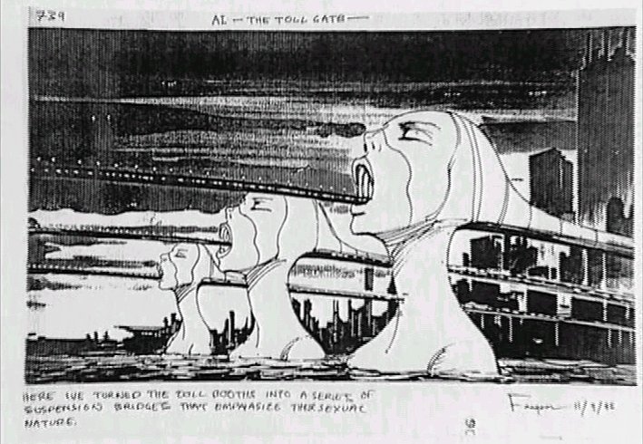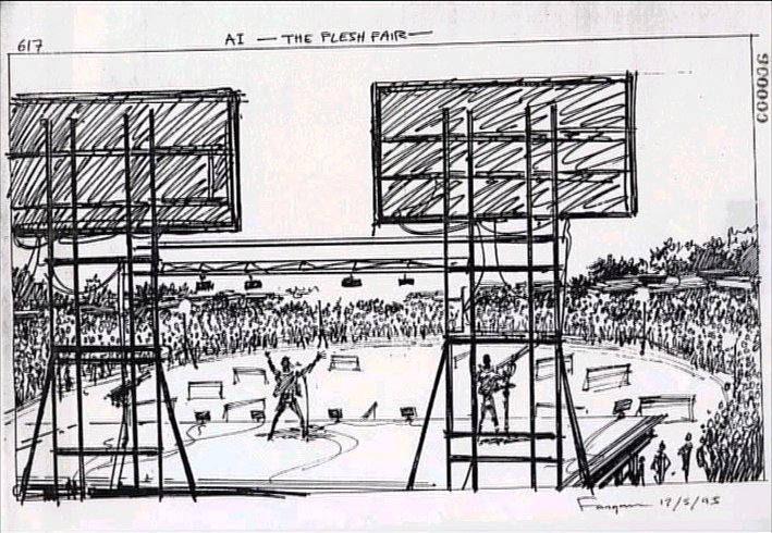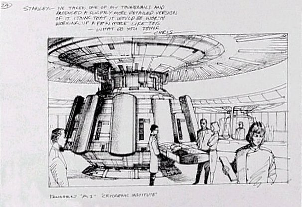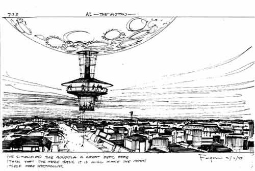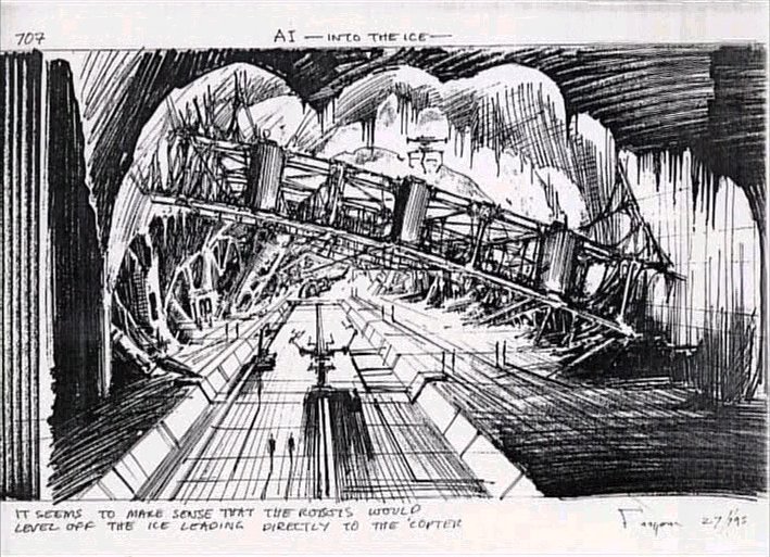 I seguenti schizzi sono stati realizzati da Chris Baker nei due anni e mezzo di lavoro alle dipendenze di Kubrick. Il produttore Jan Harlan ha dichiarato nelle interviste di aver passato tutto il materiale di pre-produzione per A.I. a Spielberg, inclusi oltre 900 disegni per lo storyboard. Alcuni di questi sono mostrati nel DVD del film, come portfolio di Christopher Baker. Le didascalie in corsivo sono traduzioni degli appunti allegati ai disegni da Baker per Kubrick.