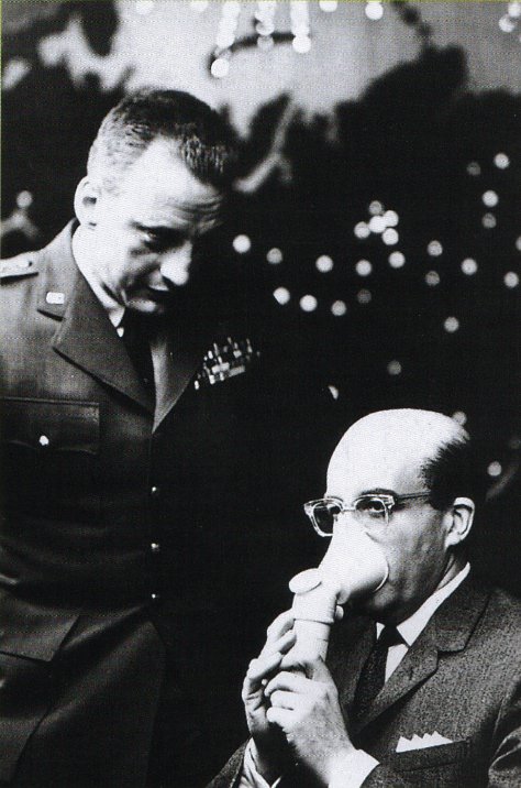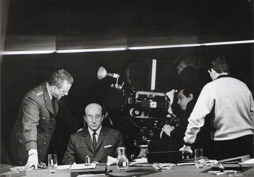 Stando alle notizie scritte da Vincent LoBrutto nella sua biografia, Sellers interpretò in un primo momento il Presidente Muffley in modo effeminato, delineandolo come un uomo passivo, costantemente alle prese con un inalatore nasale. Dopo aver girato diverse scene nelle quali il personaggio veniva rappresentato in questo modo, Kubrick disse a Sellers di volere che il presidente mostrasse una ragionevole sanità mentale in mezzo al caos che dominava tra gli altri politici. Kubrick girò di nuovo le scene con Sellers che recitava ora la parte del presidente come un filantropo e liberale. Le foto seguenti potrebbero essere state scattate durante quei primi giorni di riprese, in un momentaneo attacco di panico che avrebbe colpito il debole Presidente Muffley sotto gli occhi di uno scettico Turgidson.