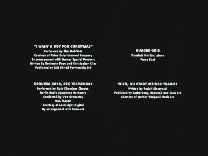 Un brevissimo estratto dal Requiem incompiuto di Mozart (Rex Tremendae Maiestatis, qui salvandos salvas gratis, salva me, fons pietatis) si ascolta nello Starky's pub in cui Bill entra per sfuggire al pedinatore, subito prima che legga sul giornale la notizia della morte per overdose di Amanda Curran. Non presente nella colonna sonora distribuita in CD.