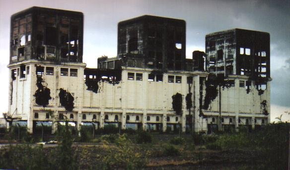 destra, la fabbrica di gas di Beckton dove è stata girata la scena