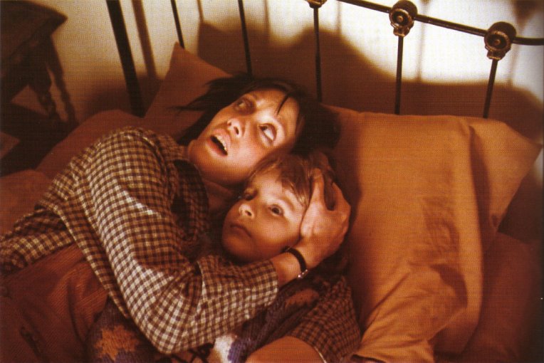 Questa fotografia si riferisce ad una scena tra Danny e Wendy presente nella versione americana del film: mentre Danny è mantenuto in trance ipnotica da Tony, Wendy cerca di proteggerlo dall'arrivo di Jack. La versione americana non contiene questo particolare ciak, che è stato pubblicato sul volume Kubrick di Michel Ciment. L'immagine potrebbe essere una fotografia di scena o un fotogramma da un ciak non utilizzato.