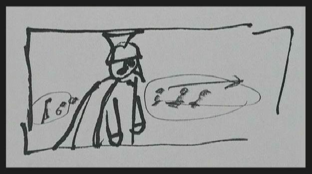 La numerazione dei file sketch.jpg segue l'ordine di presentazione del DVD, ma lo storyboard è stato riorganizzato per cercare di farlo aderire quanto possibile al susseguirsi delle inquadrature del film finito. Il numero dei fotogrammi corrisponde esattamente a quello delle inquadrature.