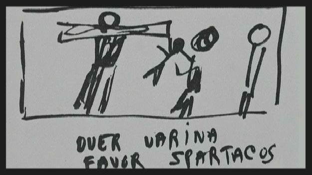 Il DVD di Spartacus della Criterion Collection contiene, tra i numerosi contenuti extra, alcuni dei disegni realizzati da Kubrick come storyboard per l'ultima sequenza del film: Varinia (Jean Simmons) si avvicina assieme a Lentulo Batiato (Peter Ustinov) alla croce su cui è stato appeso Spartaco (Kirk Douglas) condannato a morte, per mostrargli suo figlio, nato libero, proprio come aveva sognato suo padre.
